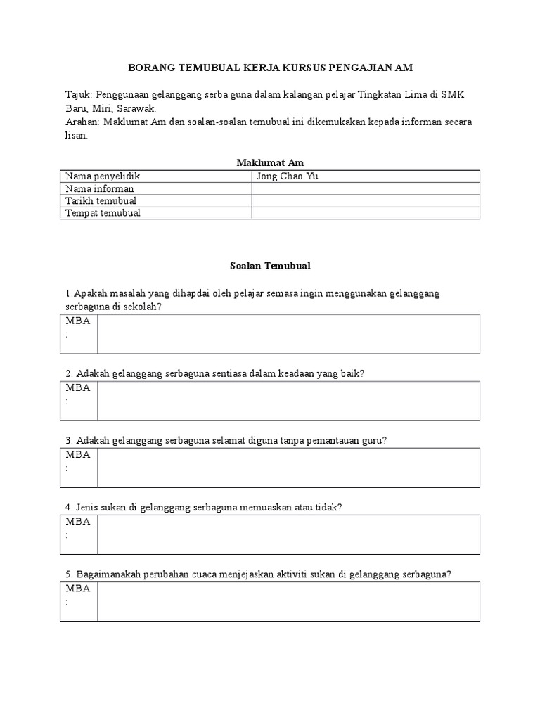 Borang Temubual Kerja Kursus Pengajian Am from imgv2-1-f.scribdassets.com Keseluruhannya,kajian yang telah saya lakukan mendapati bahawa kebanyakan di felda chini 4 mempunyai lebih ramai responden. 3.1 arahan am 3.1.1 kerja kursus pengajian perniagaan wajib diambil oleh semua calon, sama ada calon sekolah kerajaan, calon sekolah bantuan kerajaan, calon sekolah swasta, atau calon persendirian individu. Apakah ada perbedaannya tingkat produktifitas anatara pegawai adakah perbedaan kapabilitas dan kedisiplinan kerja antara pegawai di perusahaan nasional dan. Contoh rumusan pbs pengajian am. Stpm pengajian am kerja kursus. 2.0 bagaimana untuk berjaya sebagai seorang pelajar jarak jauh. Contoh metodologi kerja kursus p.am. Matlamat kursus ini ialah sebagai pendedahan proses pelaksanaan kajian sebelum.