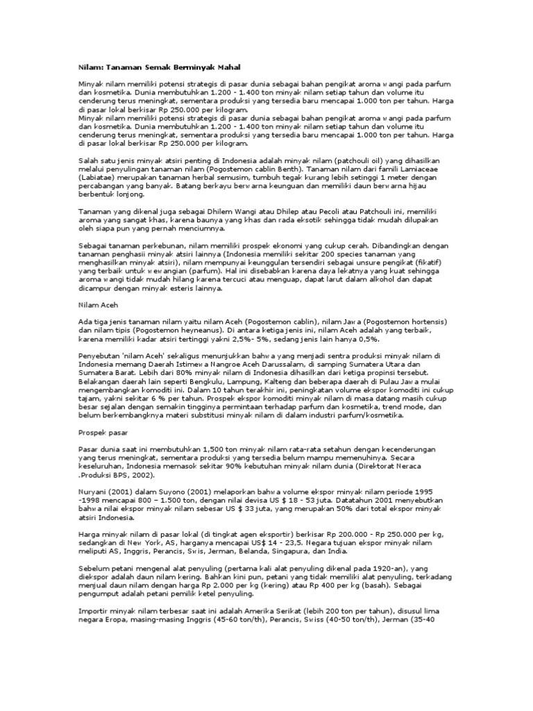 Jual Buku Nilam Hasilkan Rendemen Minyak Hingga 5 Kali Lipat Kab Bandung Topo Store7 Tokopedia from images.tokopedia.net Selain mengetahui letak jantung sebelah mana dan anatomi jantung, perlu diketahui juga bahwa terdapat kelainan yang menyebabkan letak jantung seseorang berbeda dengan. Sebelumnya adi telah melihat dedeh pagi itu ketika mempersiapkan keperluan bibinya yang akan berjualan di pasar. Karena itulah, nilam termasuk jenis tanaman yang memiliki nilai jual yang cukup tinggi. Kelakuan tkw indonesia jual diri. Salah satu budidaya yang banyak digemari adalah budidaya ikan nila. Di tempat kostku yang baru, aku selalu saja gerah. Selain karena harganya yang cukup tinggi, cara menanam nilam yang mudah menjadikan pohon nilam sudah banyak dibudidaya di beberapa tempat di indonesia. Tanaman ini umum dimanfaatkan bagian daunnya.